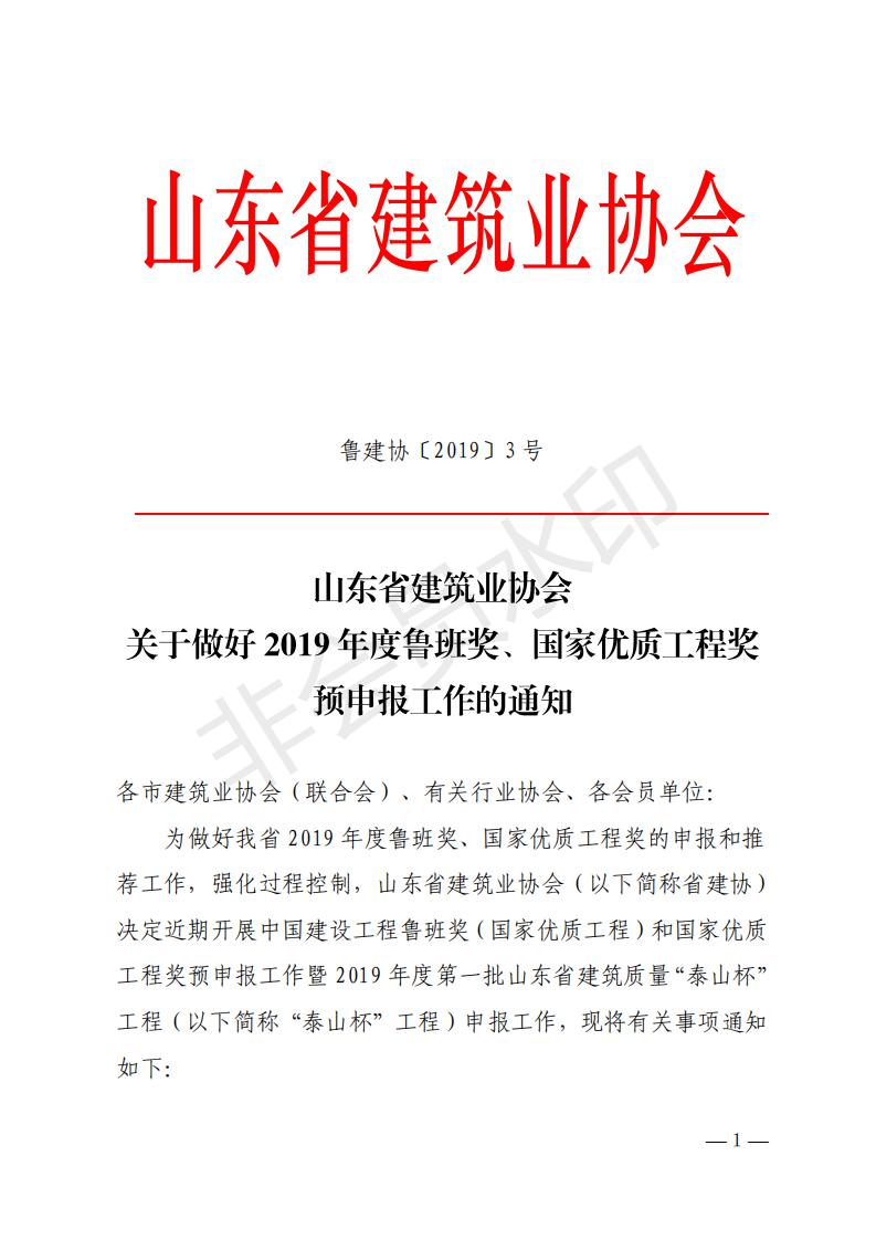 轉(zhuǎn)發(fā)山東省建筑業(yè)協(xié)會(huì)關(guān)于做好2019年度魯班獎(jiǎng)、國(guó)家優(yōu)質(zhì)工程獎(jiǎng)?lì)A(yù)申報(bào)工作的通知
