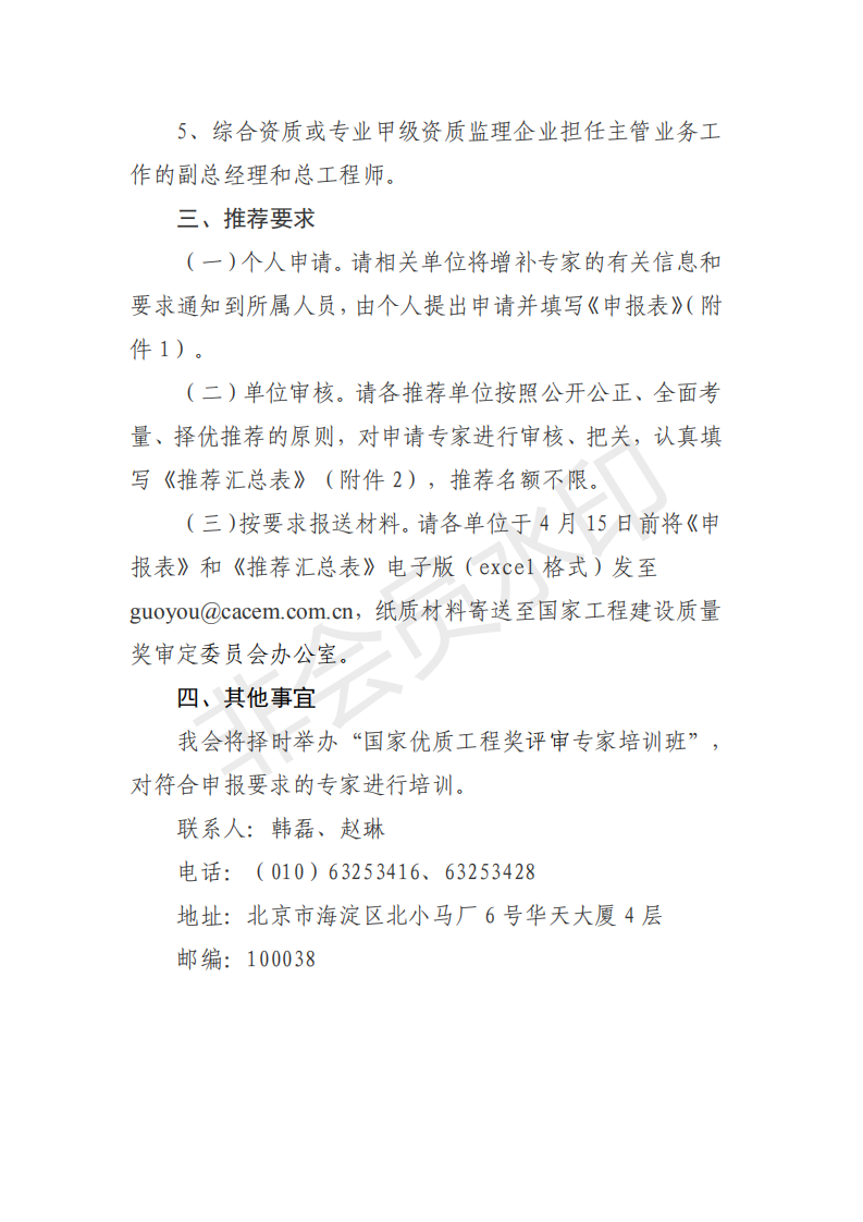 轉(zhuǎn)發(fā)《關(guān)于推薦國家優(yōu)質(zhì)工程獎評審專家的函》的通知