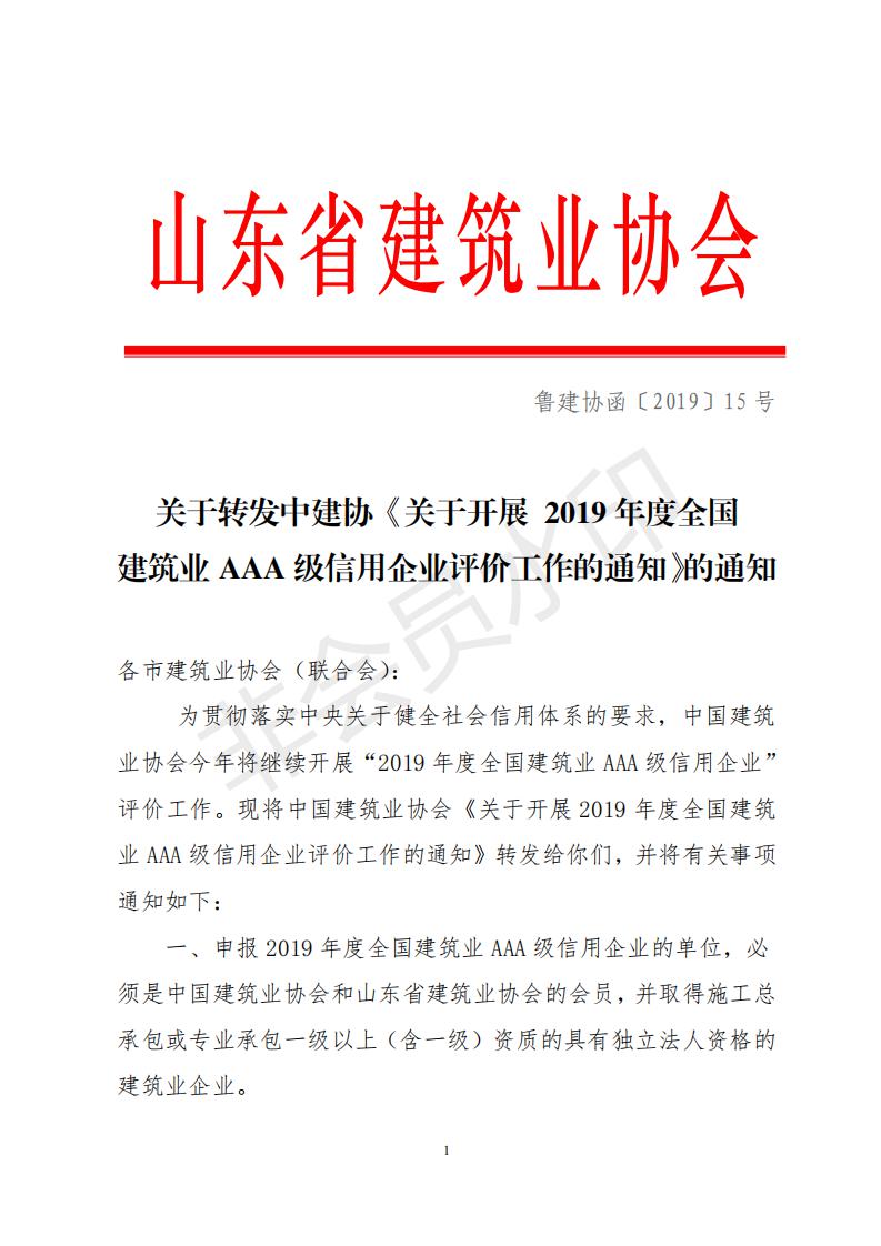 1、中建協(xié)《關(guān)于開展2019年度全國建筑業(yè)AAA級(jí)信用企業(yè)評(píng)價(jià)工作的通知》.pdf