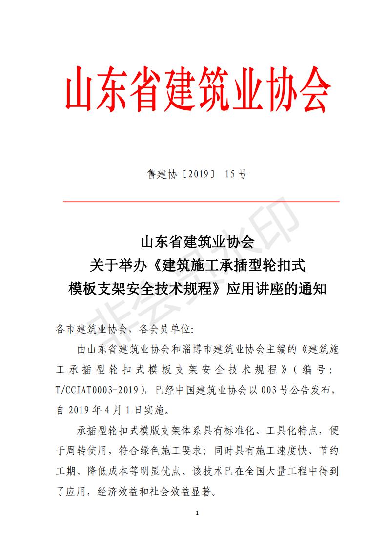 山東省建筑業(yè)協(xié)會 關(guān)于舉辦《建筑施工承插型輪扣式 模板支架安全技術(shù)規(guī)程》應(yīng)用講座的通知