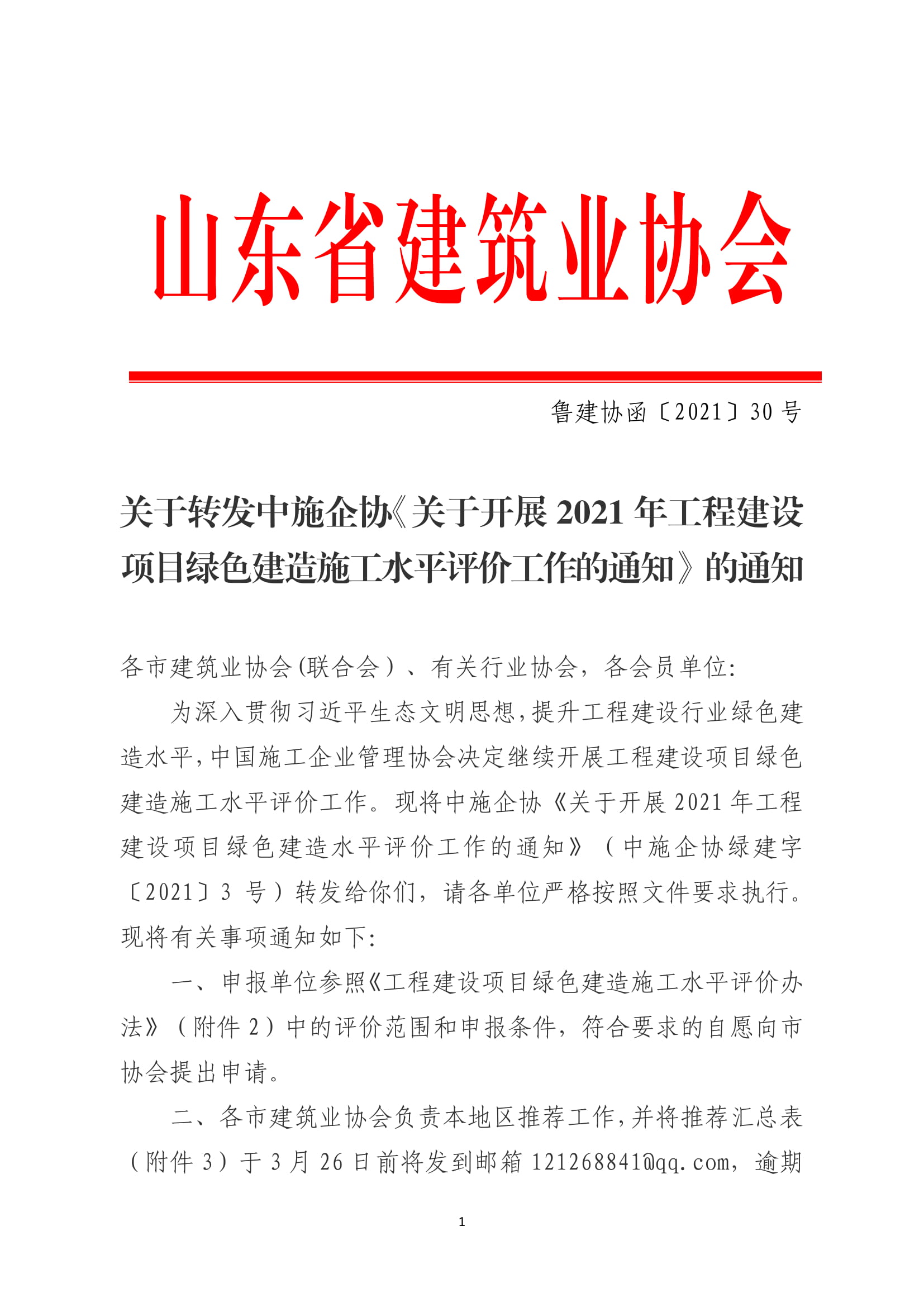 ![]() | 附件1、中施企協(xié)《關(guān)于開展2021年工程建設(shè)項目綠色建設(shè)施工水平評價工作的通知》。 |