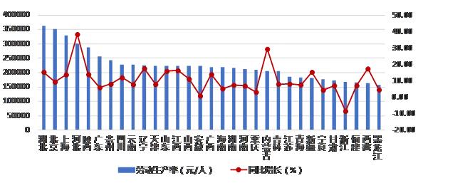 圖7 2019年上半年各地區(qū)建筑業(yè)勞動(dòng)生產(chǎn)率及其增速