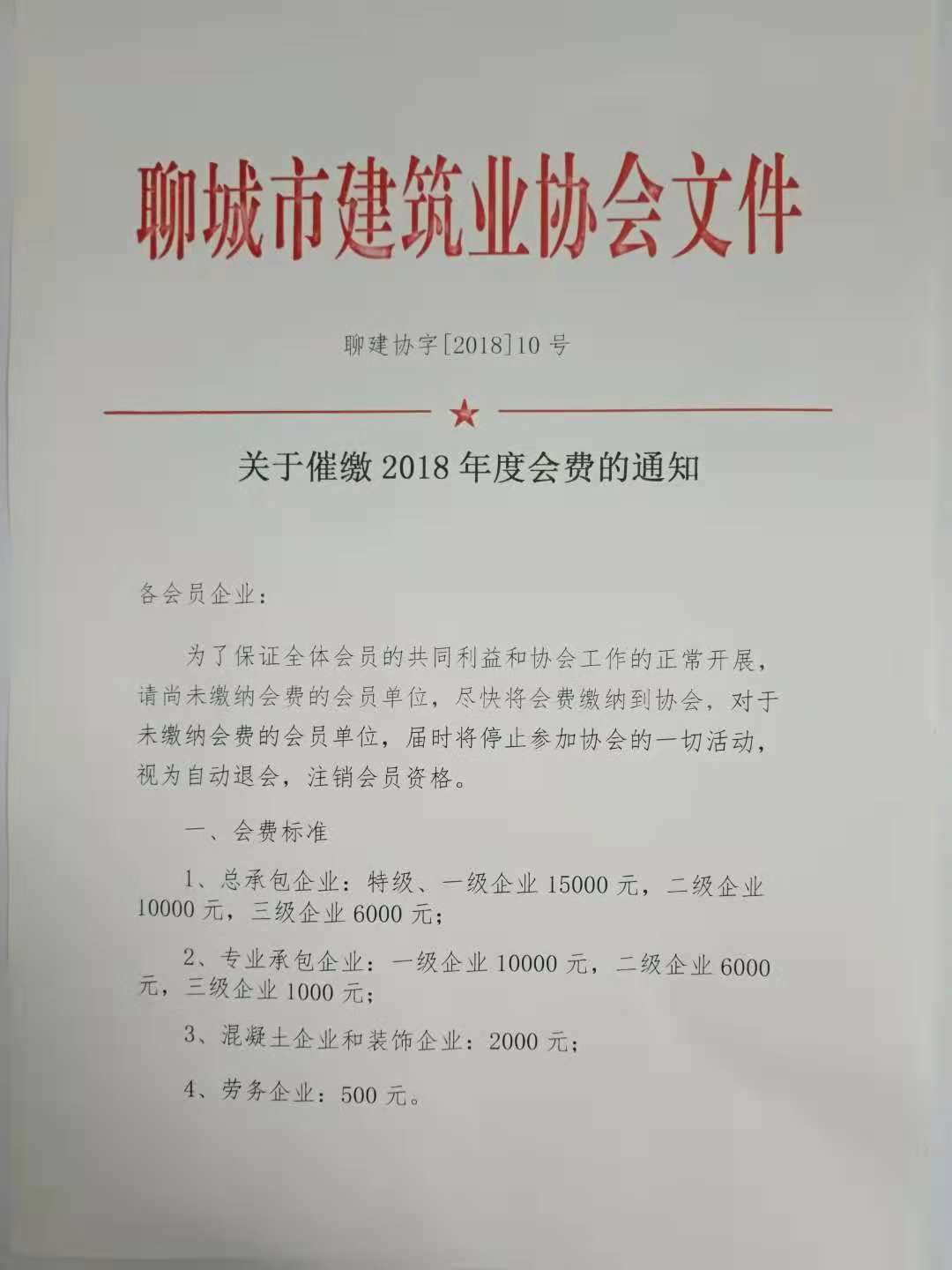 關(guān)于催繳2018年度會費的通知